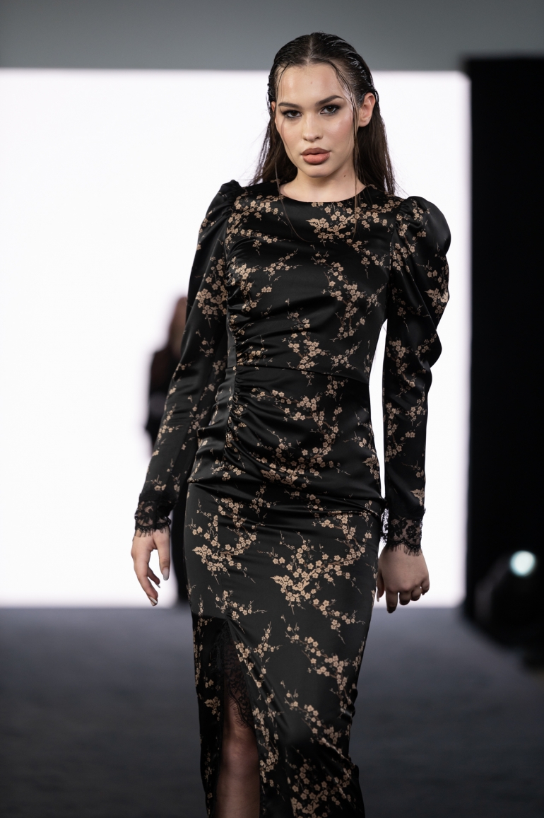 Открыла дефиле коллекция «Литература. Вдохновение поэтами Серебряного века» от хэдлайнера, ульяновского предпринимателя и дизайнера Марины Голицыной. Демонстрация нарядов сопровождалась живым вокалом Юлии Родионовой. Она исполнила произведение на стихи Марины Цветаевой.