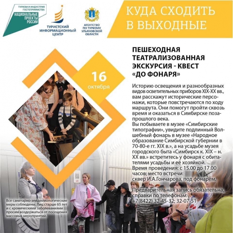 Вы побываете в музее «Симбирские типографии», увидите подлинный Волшебный фонарь в музее «Народное образование Симбирской губернии в 70-80-е гг. XIX в.», а на усадьбе музея городского быта «Симбирск к. XIX – н. XX вв.» встретитесь у фонаря с обитателями усадьбы и её хозяйкой.