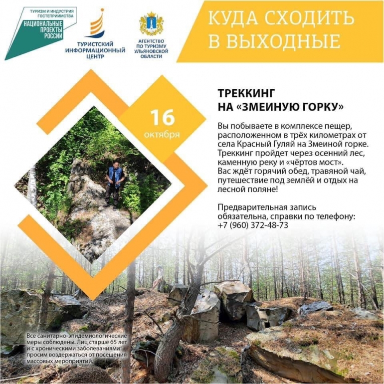 Если дух путешественника внутри вас просится на волю, то эта подборка для вас. Агентство по туризму Ульяновской области предлагает поучаствовать в треккинге на Змеиную горку, отправиться на прогулку в рамках театрализованной экскурсии или познакомиться с историей сыра. Выбирайте то, что вам по душе!
