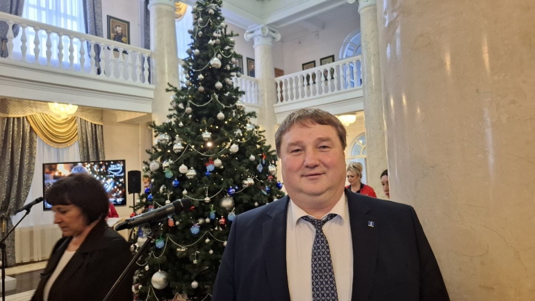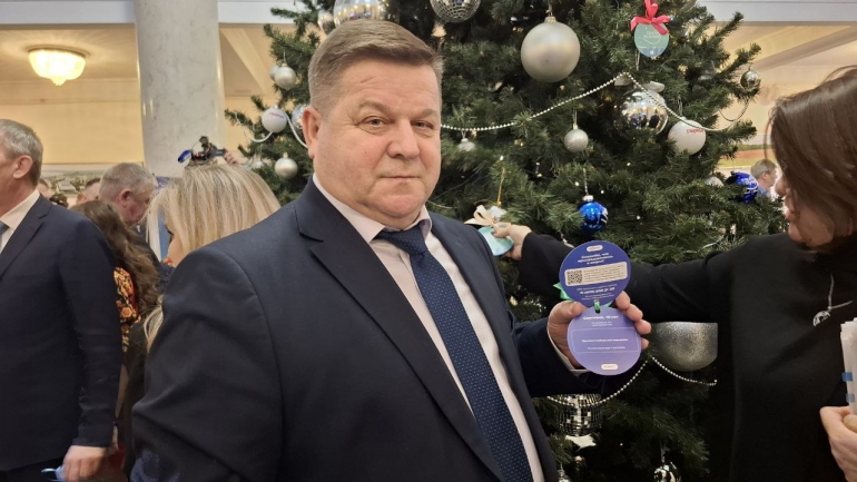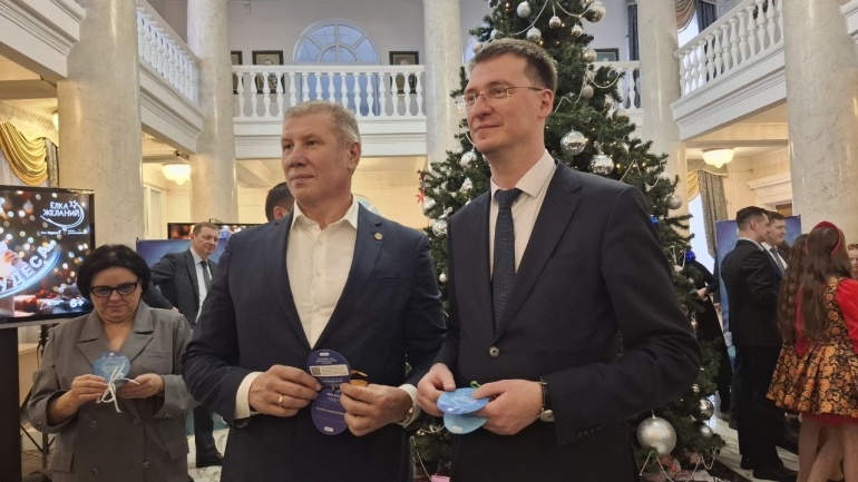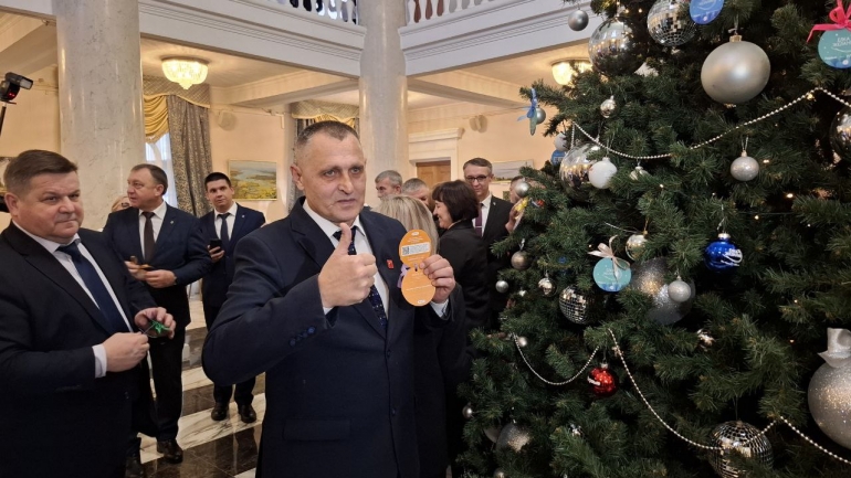 Председатель правительства Геннадий Спирчагов снял с ёлки шарик с желанием пятилетнего Андрея — мальчик попросил роликовые коньки.