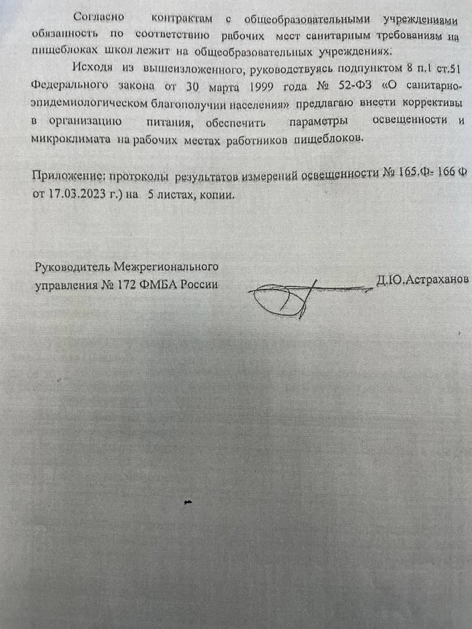«С целью соблюдения санитарных правил (рекомендаций), принципов здорового питания считаю необходимым внести корректировки в организацию школьного питания с учетом вышеизложенных рекомендаций», – дал рекомендации Дмитрий Астраханов.