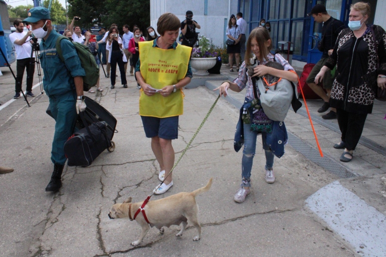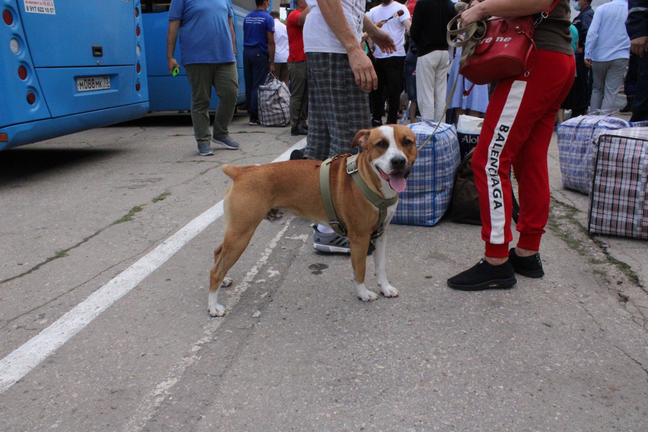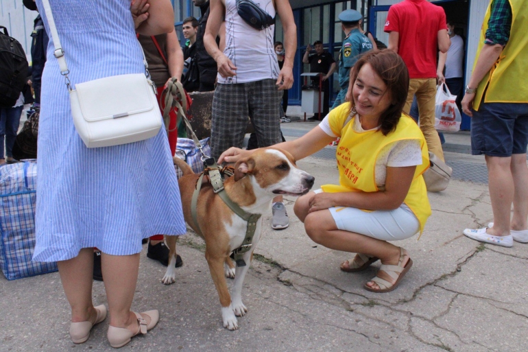 Одна из беженцев Галина Баутина приехала из Северодонецка Луганской Народной Республики вместе со стаффордширдским терьером по кличке Симба.