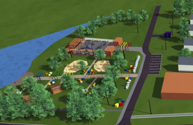 Парк расположен в лесополосе. По задумке проектировщиков, парк должен стать комфортным местом для семейного отдыха. Здесь в следующем году заменят входную группу, установят сцену, ограждение и уличное освещение, лавки и урны, а также проложат пешеходные дорожки.
