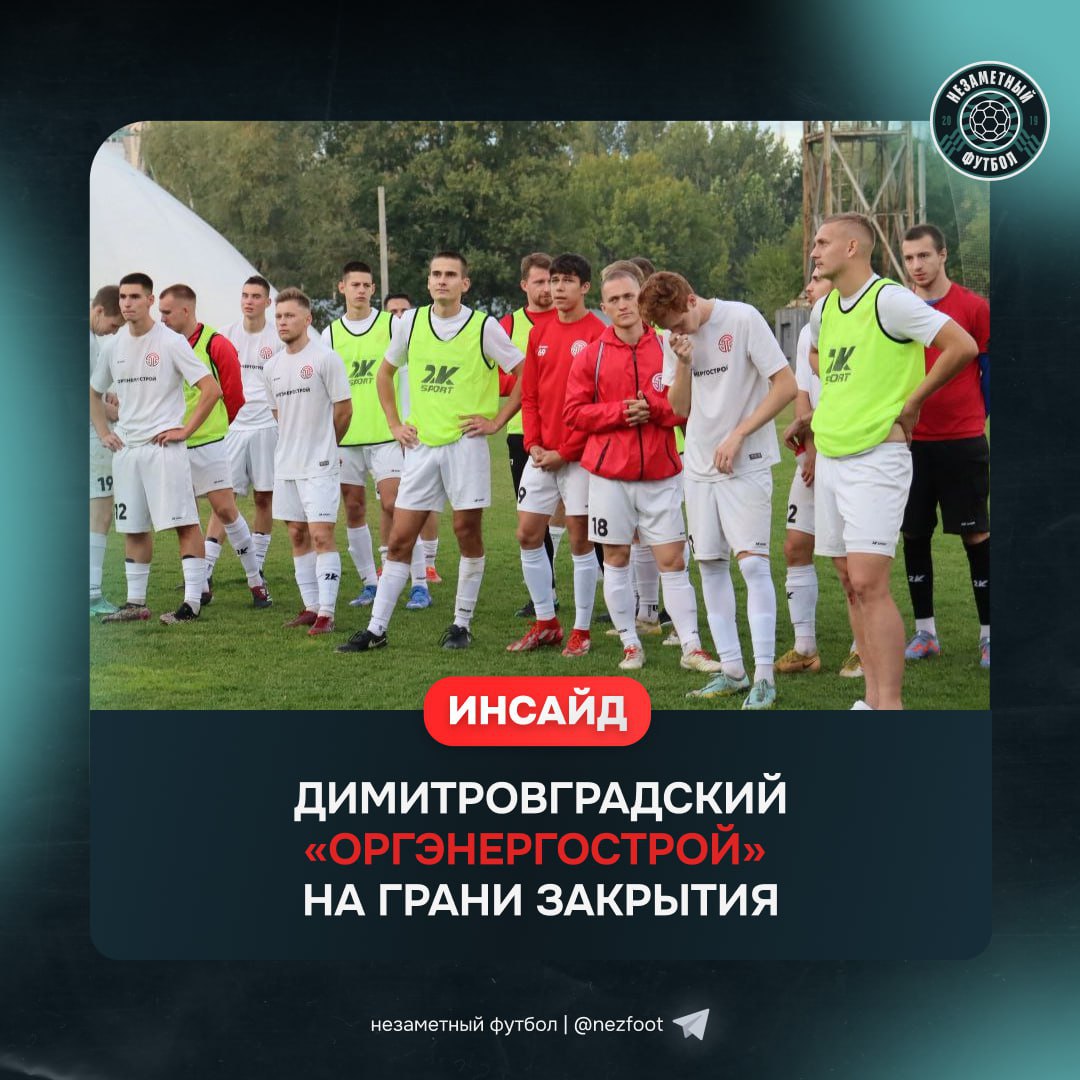 По данным телеграм-канала «Незаметный футбол», димитровградский «Оргэнергострой» из-за финансовых проблем может не сыграть в третьей лиге, где играют любительские клубы. Позже «Оргэнергострой» сделал репост этой новости на своих ресурсах.
