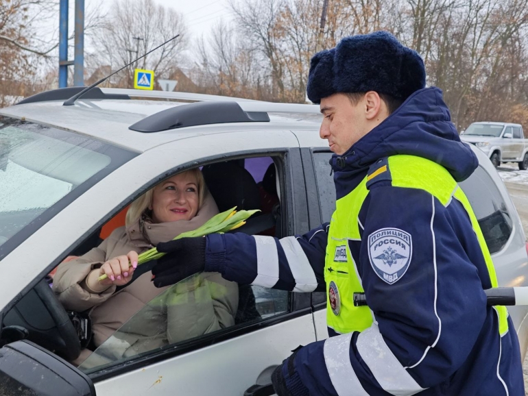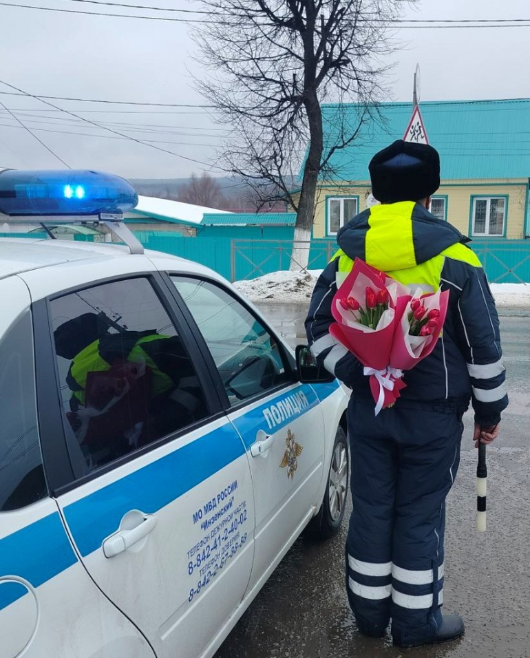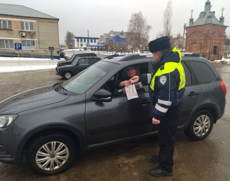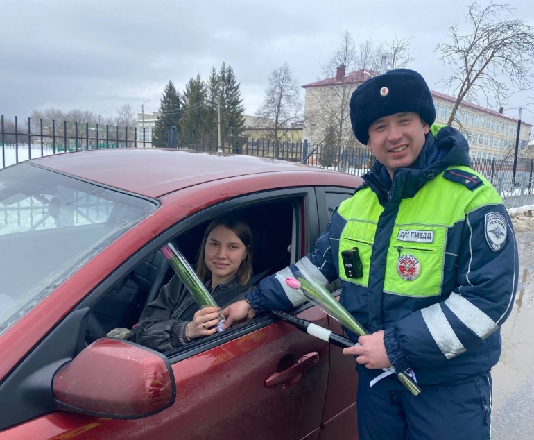 В преддверии праздника сотрудники Госавтоинспекции провели профилактическую акцию «8 марта – цветы для автоледи».
