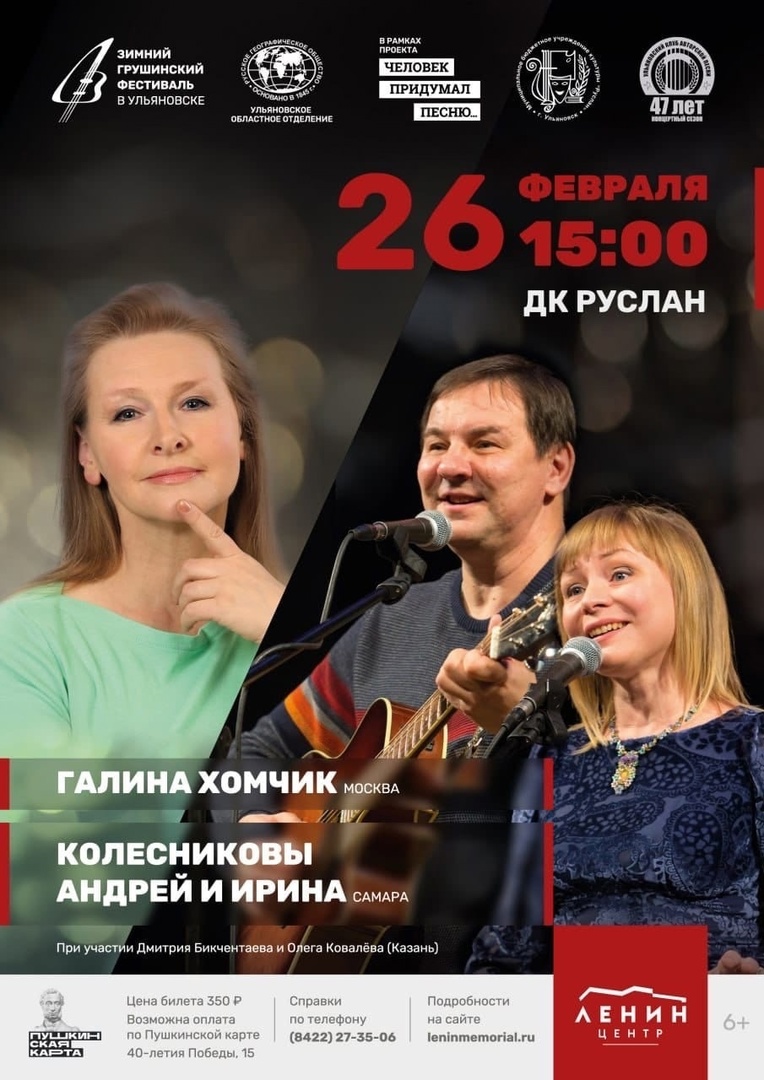 Концерт Галины Хомчек (гитара) и Андрея и Ирины Колесниковых (гитара)| 6+