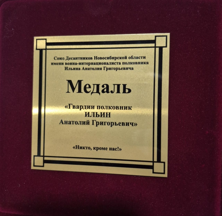 Депутат ЗСО Юрий Мухин сообщил, что вместе с депутатом УГД Дмитрием Кочкаревым по поручению боевых братьев из Союза десантников Новосибирской области вручил генералу Вадиму Орлову медаль полковника Анатолия Ильина.