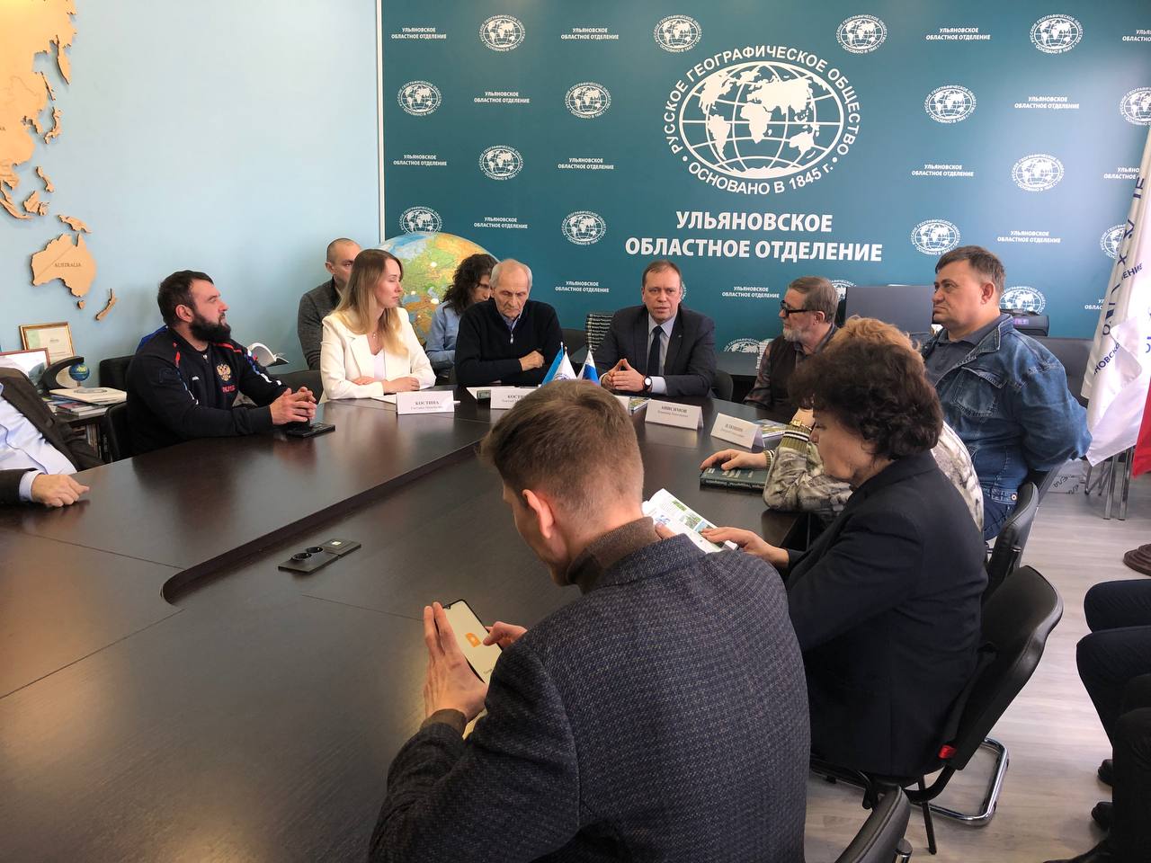 Председатель реготделения Российского географического общества Дмитрий Травкин собрал в своем штабе краеведческое сообщество Ульяновска, где презентовал сразу две новые книги: «Родники земли Симбирской» Дмитрия Илюшина и «История «государства» Симбирского» Николая и Светланы Костиных. А затем предложил создать в Ульяновске бульвар географов и краеведов.