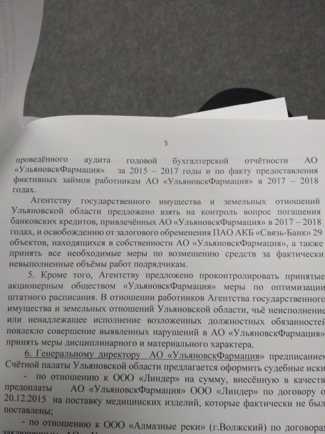 На момент ареста Тихонова и Ко (в июне 2018 года - прим. ред.) точно не было известно о финансовом положении "УльяновскФармации". Первое понимание, что возникли серьезные проблемы, пришло в августе при новом руководстве. Сотрудник департамента госимущества, который отвечал за "Фармацию", уволен.