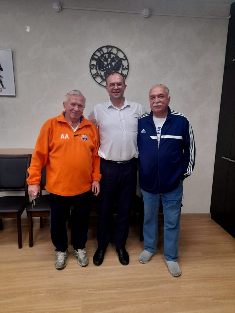 На фото с хоккеистом Анатолием Рушкиным и футболистом Сергеем Седышевым