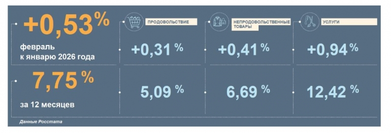 Сильнее всего в феврале увеличилась стоимость услуг. Цены на непродовольственные товары выросли менее ощутимо.