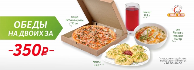 Попробуйте! Доставка в GoodFood работает с 10.00 до 23:30 без выходных!