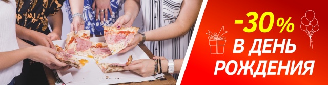 Для именинников подготовлены особые условия! Скидка на все меню 30%.