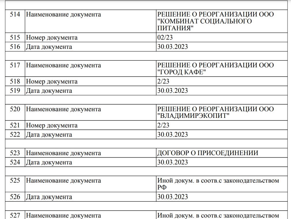 В апреле в ЕГРЮЛ «Города кафе» внесли ряд изменений, в частности – о присоединении к другому юрлицу и регистрации в налоговой службе Ярославской области.