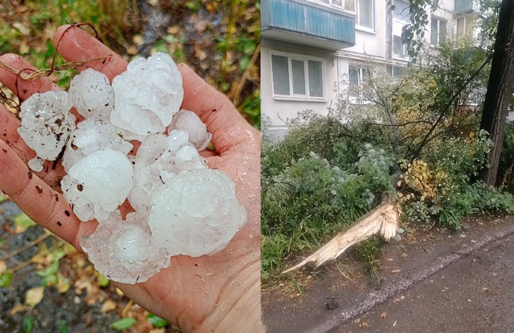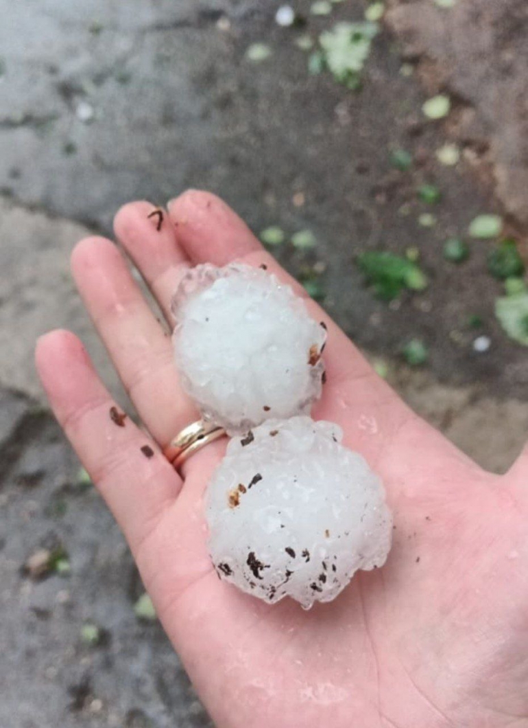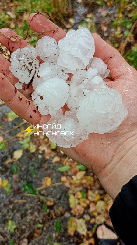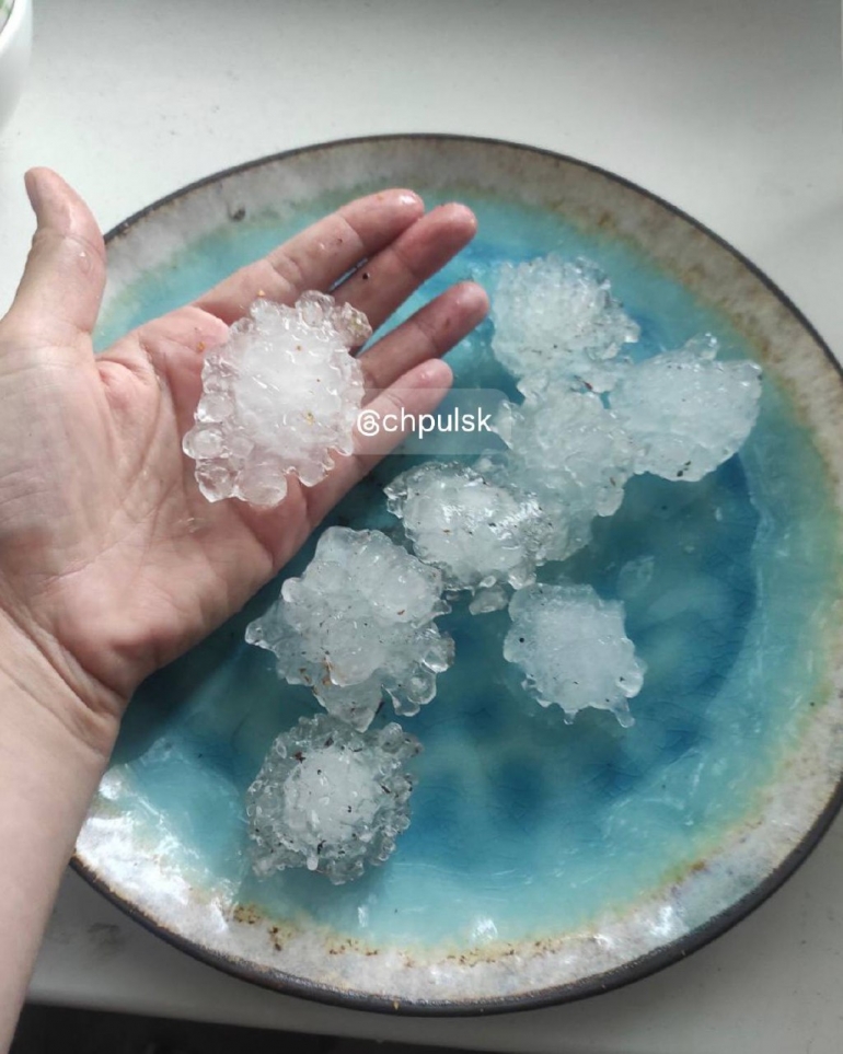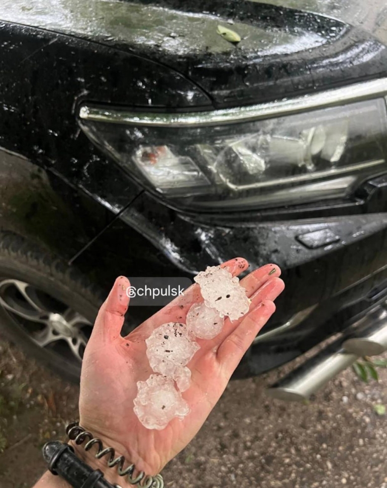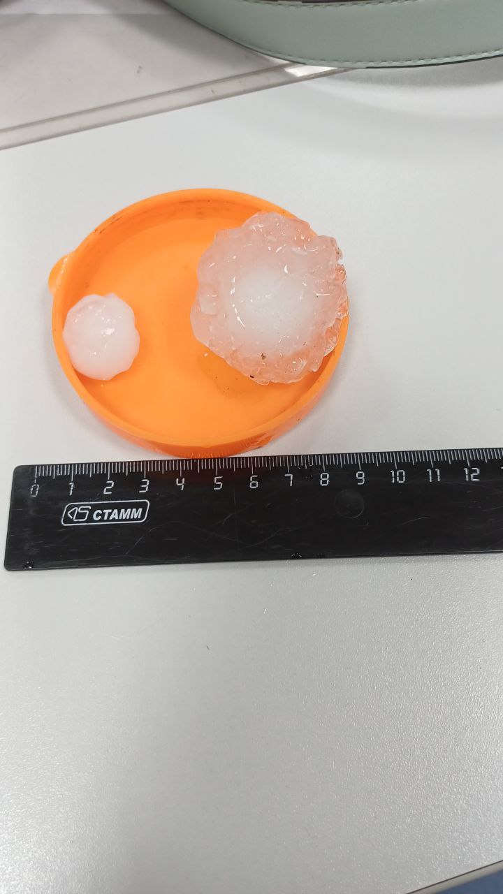 Очень крупный град обрушился на все районы города. Размер градин впечатляет.