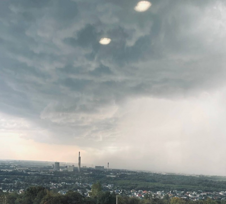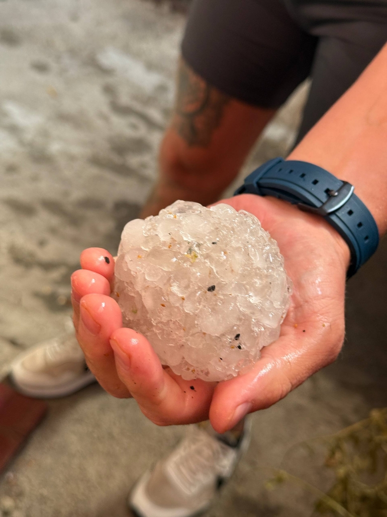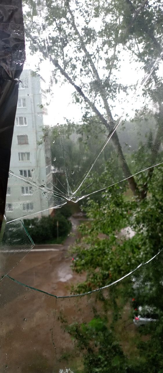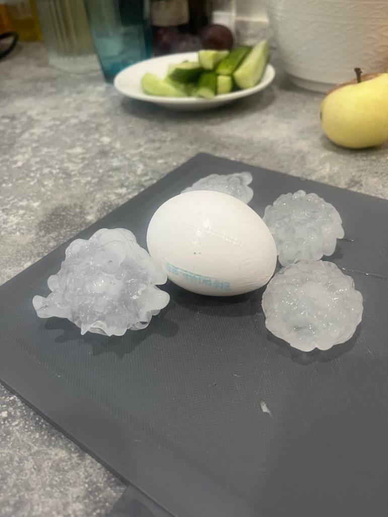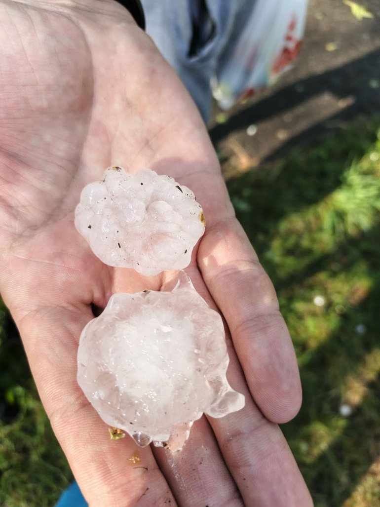 Очень крупный град обрушился на все районы города. Размер градин впечатляет.