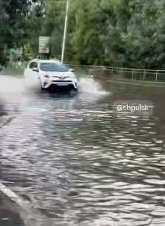 Аналогичная ситуация в Новом городе – на проспекте Сурова ливень застал автолюбителей врасплох.
