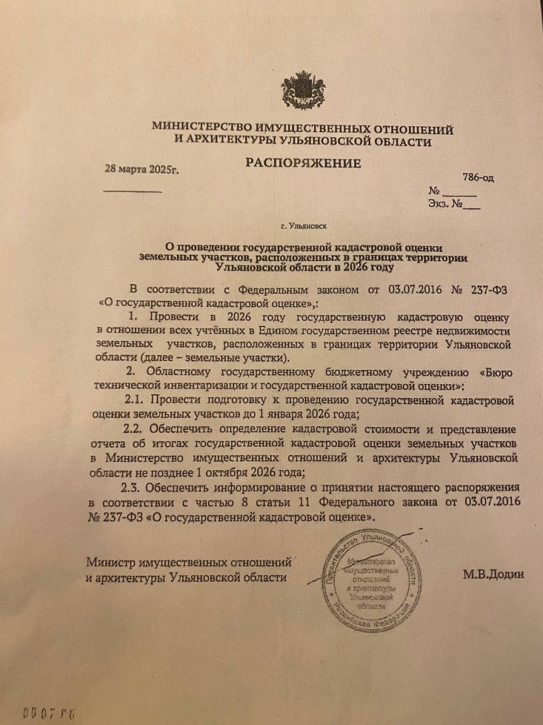 В Ульяновской области земли последний раз переоценивались в 2022 году, поэтому в марте 2025 года Михаил Додин, возглавлявший в ту пору профильное министерство, подписал распоряжение о подготовке к этой процедуре в 2026 году.