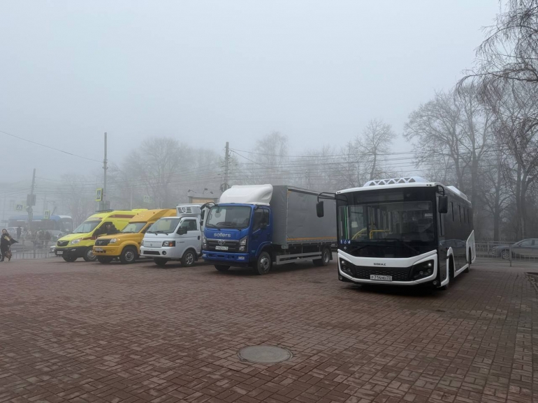 День для форума выдался туманным: видимость у «Губернаторского» дворца была чуть больше 100 метров. У входа — традиционная выставка местной техники.