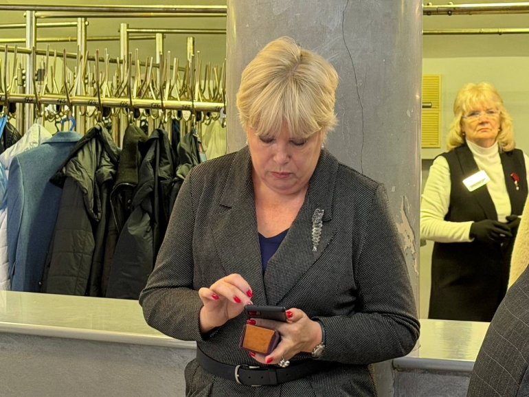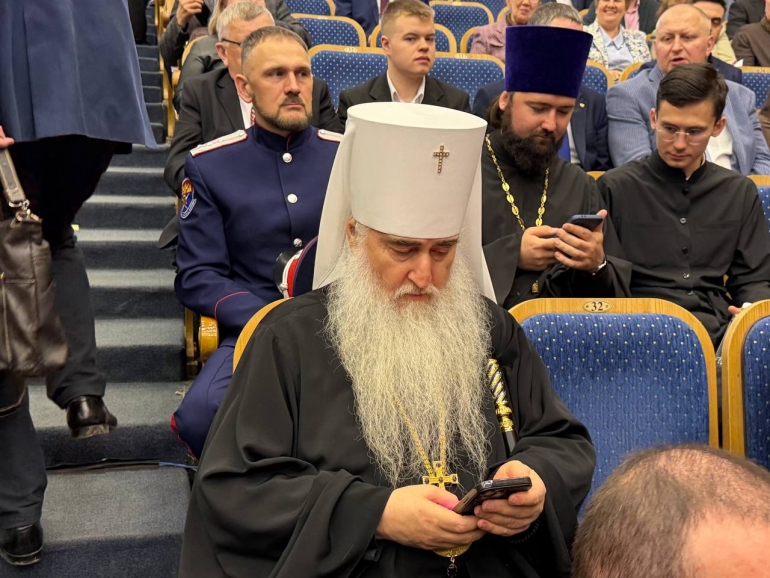 Владыка Лонгин в мирских заботах — что-то внимательно читает в телефоне.