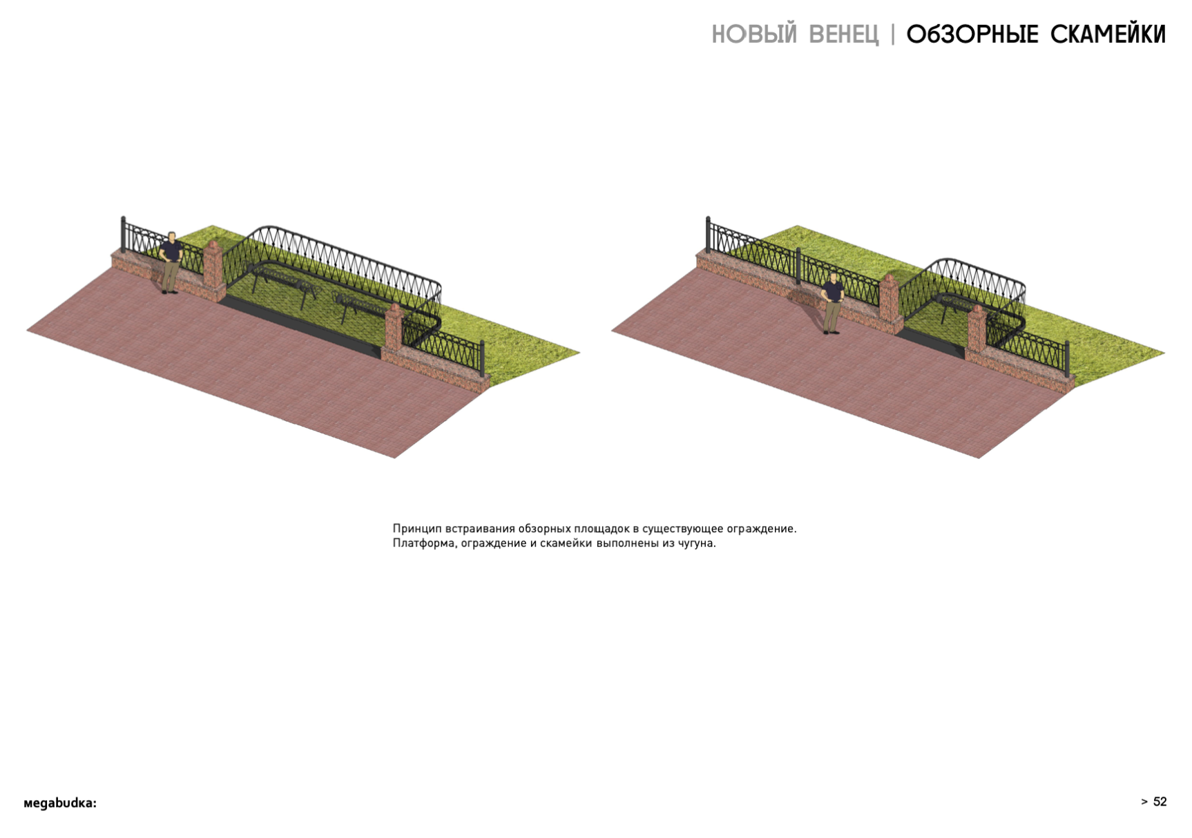 На бульваре Новый Венец сделают террасу со всесезонной печью, газон с лежаками, торговые павильоны, кафе на фуникулере, библиотечную площадку, ярмарочную площадь, пространство для выставок, новый памятник букве «Ё» в виде каменной кладки, площадку для танцев и места для просмотра вида на Волгу. Зимой вдоль Венца зальют каток.