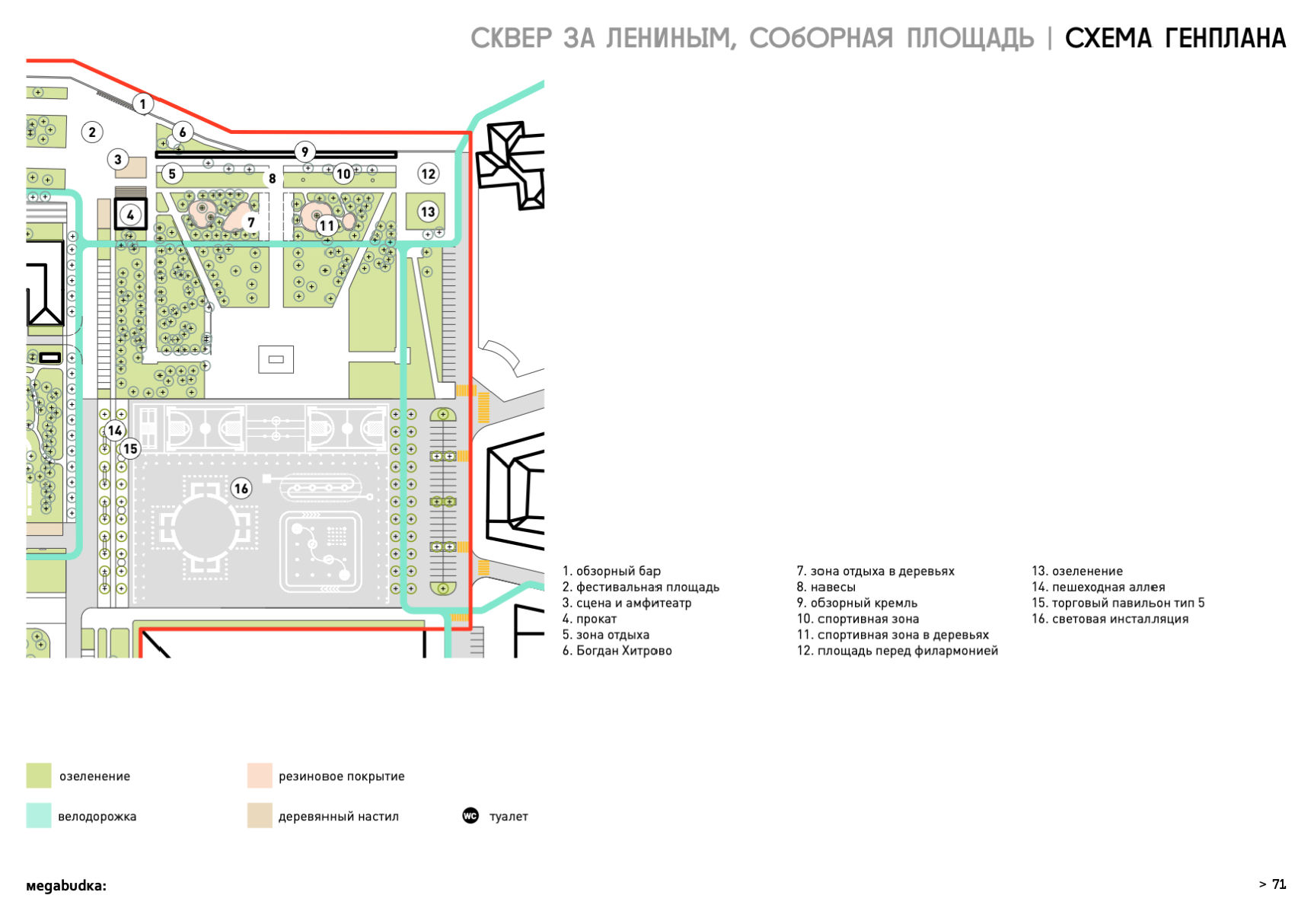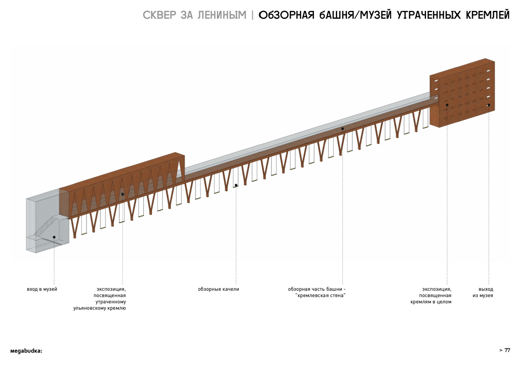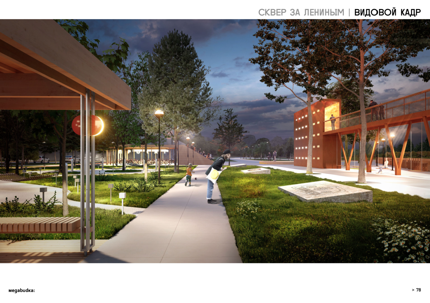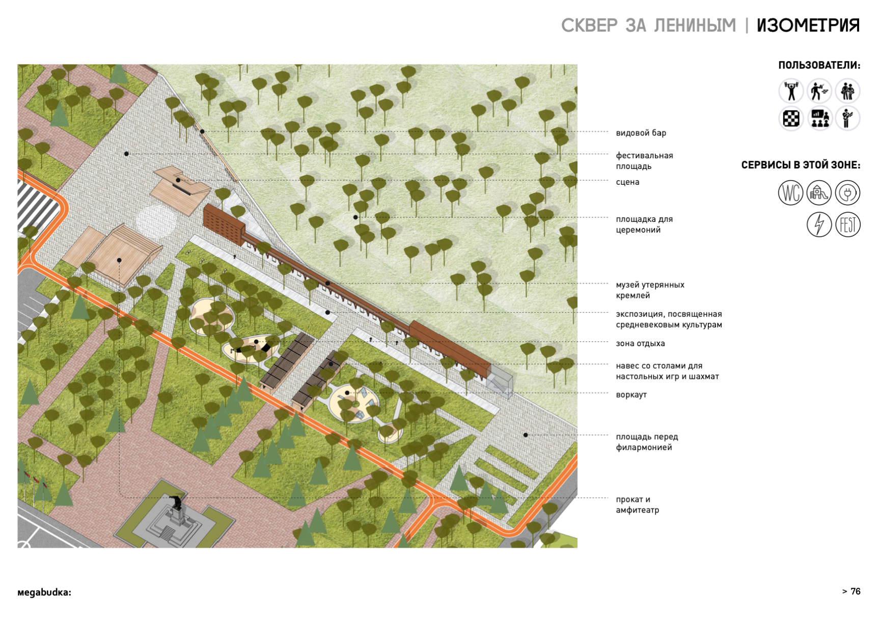 В сквере за памятником Ленину создадут музей утерянных кремлей, видовой бар, фестивальную площадь, экспозицию, посвященную средневековым культурам, зону отдыха, навес со столами для настольных игр и шахмат, площадку для воркаута.