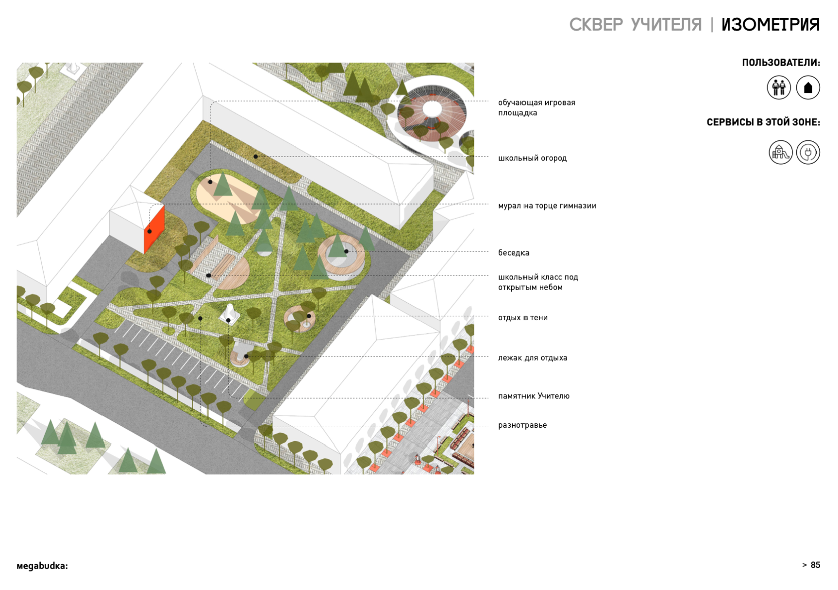 В сквере учителя спроектировали обучающую игровую площадку, школьный огород, мурал на торце гимназии, школьный класс под открытым небом.