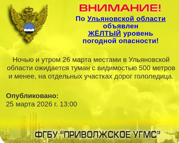 По данным Гидрометцентра, ночью и утром 26 марта местами в Ульяновской ожидается туман с видимостью 500 метров.