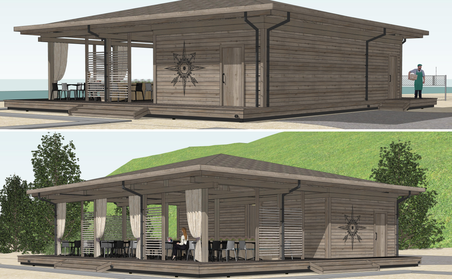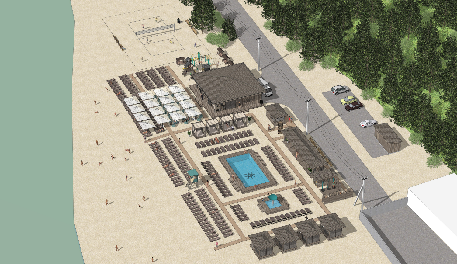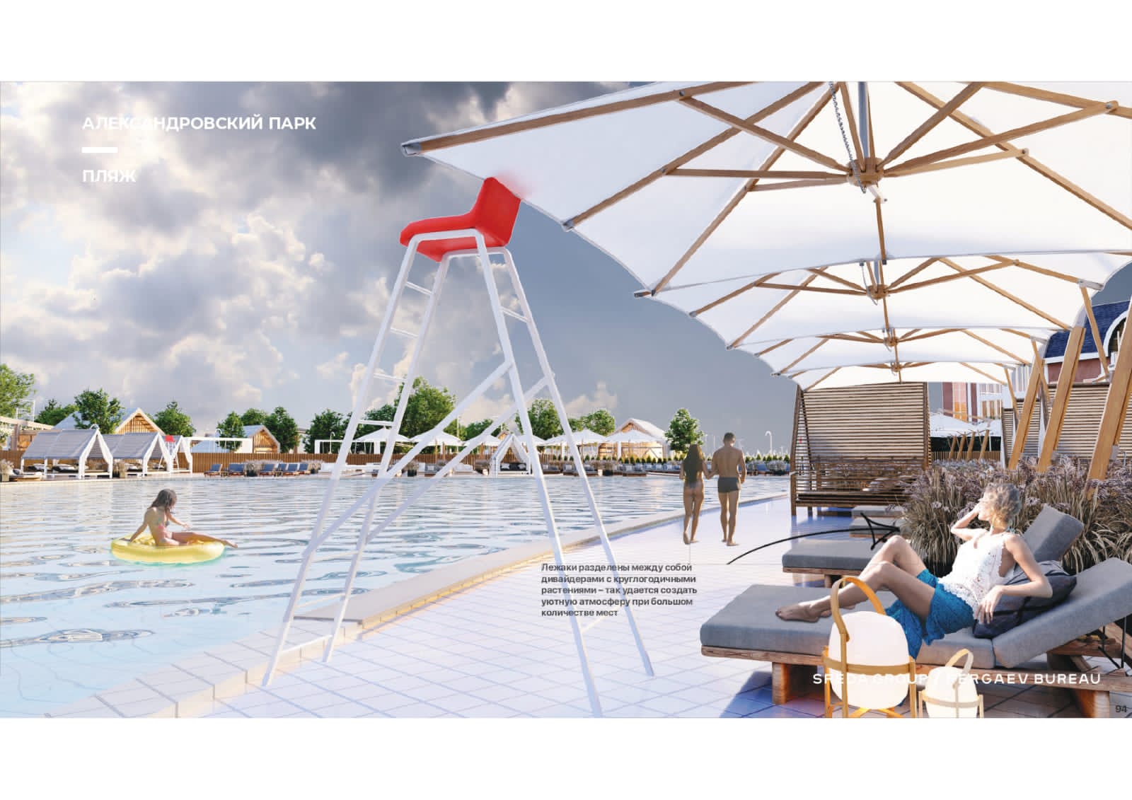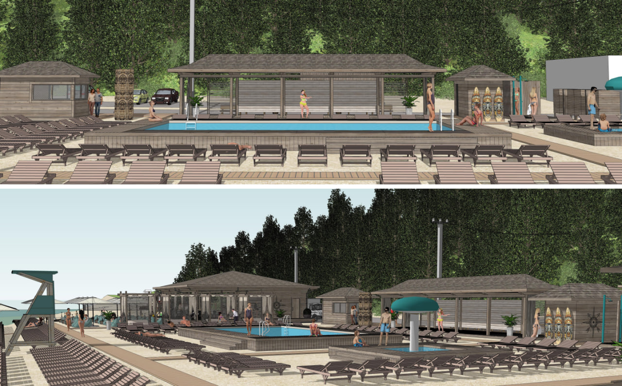 — У нас появятся бунгало и вип-кабинки для комфортного пребывания в тени (всего их восемь). Они закрываются балдахином. Кафе будет работать по системе фаст-фуд. Также предполагается создание бара с прохладительными напитками. Планируем проводить различные мероприятия у бассейна, приглашать аниматоров. Проект — это встроенный участок в статус городского пляжа. Вход на территорию бесплатный, но будут действовать платные услуги: бассейн, лежаки, раздевалки, душ, вип-кабинки, — рассказала управляющая Ирина Гаврилова.