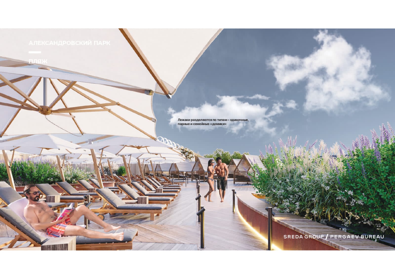 Вместо озера там сделают пляж, который будет рассчитан на 1500 мест. Здесь расположатся бани, сауны, площадка под волейбол, бары и зона фудкорта. Пляж будет отделен от резиденции парка забором. Вдоль набережной сделают вело-и беговой маршрут, который захватит весь парк. Также предусмотрена тихая зона с фонтанами, подиумами, лежаками с навесами.
