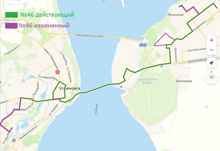 Администрация Ульяновска также намерена изменить маршрут автобуса №46. Потом его планируют перевести на регулируемый тариф. Предложена такая схема движения: