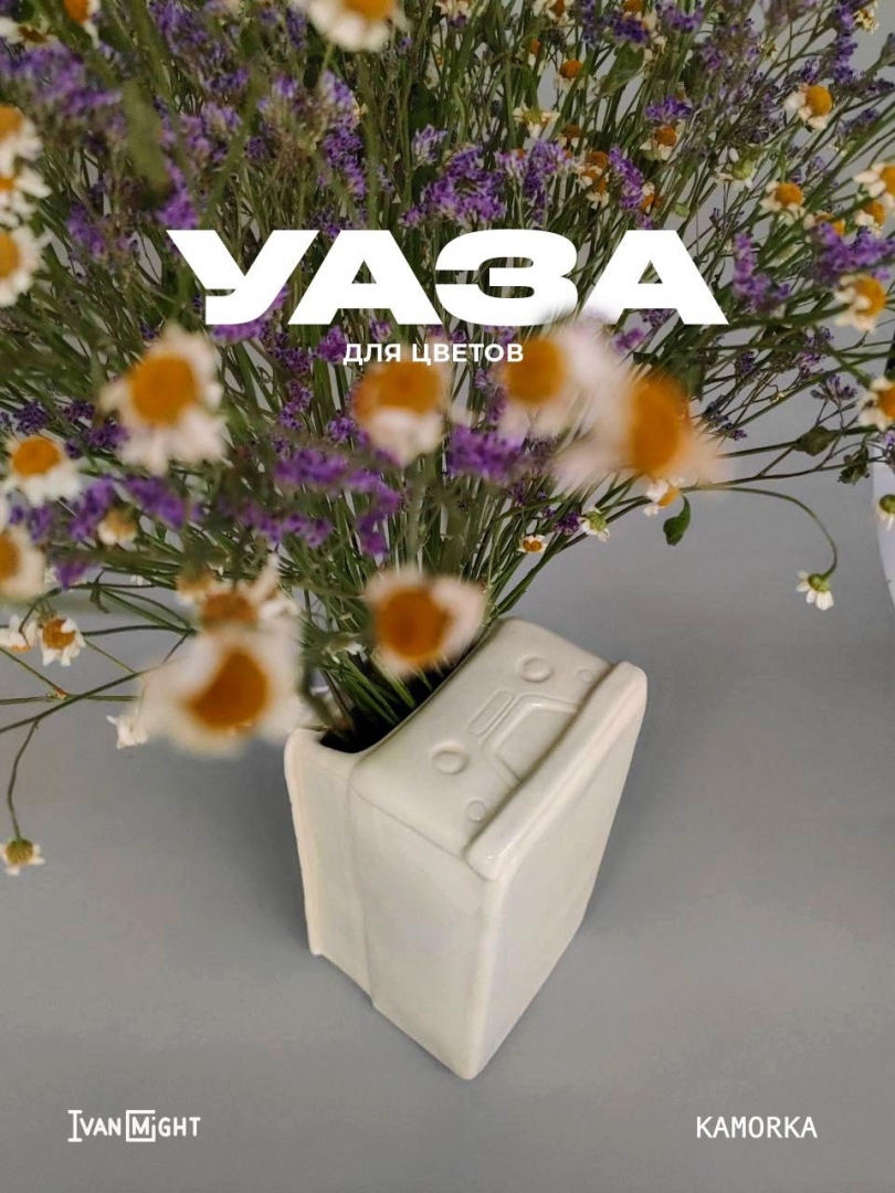 Столичный художник и уроженец Ульяновска Иван Майт вместе с фотографом Камилом Адиловым разработали эксклюзивную модель вазы в виде автомобиля УАЗ-452, в народе известного как «буханка», и назвали её УАЗой.