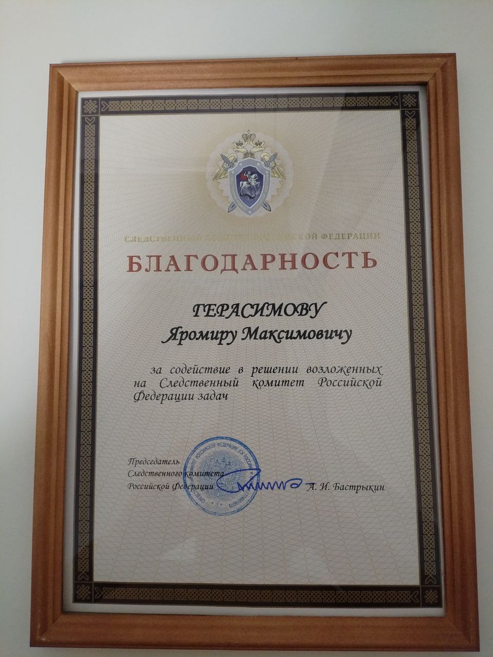 Михайлов отметил «сознательное и активное выполнение своих гражданских обязанностей» и объявил благодарность Егору и Яромиру. Их родителей глава СУ СКР поблагодарил за достойное воспитание сыновей.