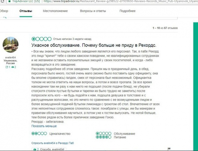 Согласно данным сайта о путешествиях «ТрипАдвизор», ульяновский Records Musiic Pub и сейчас имеет твердую четверку из возможных пяти баллов с массой положительных комментариев.