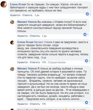 В Ассоциацию рестораторов Ульяновской области Records Music Pub не входит, но ее руководитель Марина Никитина отметила, что с Игорем Ивановым у нее хорошие рабочие отношения. Оценивать действия коллеги не может, считая, что это его личное дело: