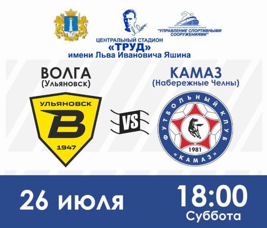 В субботу, 26 июля, футбольная «Волга» проведет второй домашний матч в Первой Лиге PARI. Она сыграет с «КамАЗом» из Набережных Челнов.