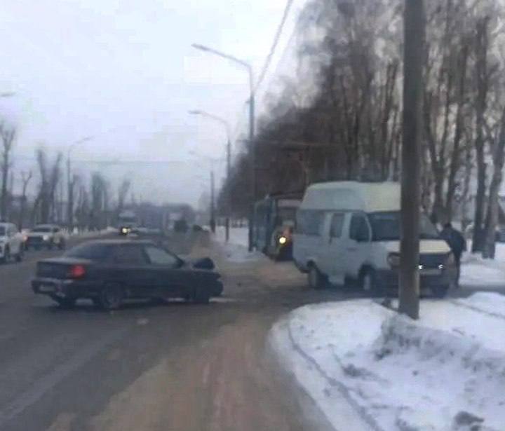 Сегодня утром в районе дома №1 «Д» по Московскому шоссе произошло столкновение микроавтобуса и легкового автомобиля. В результате аварии «Газель» вынесло на трамвайные пути.