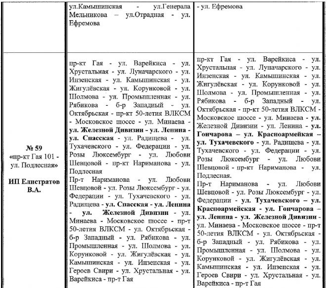 № 59 «пр-кт Гая 101 – ул. Подлесная» (ул. Ленина – ул. Гончарова – ул. Красноармейкая – ул. Тухачевского – ул. Радищева)