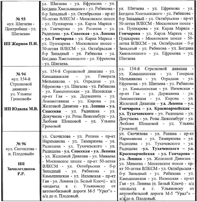 № 96 «ул. Скочилова – п. Плодовый» ул. Радищева (ул. Тухачевского – ул. Красноармейская – ул. Гончарова – ул. Ленина).