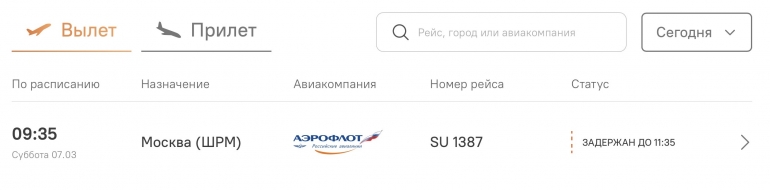 Рейс на Москву, запланированный на 9.35, задержан на 2 часа.