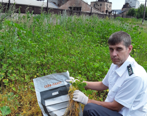 При проведении 17 июля выездного обследования земель райцентра Чердаклы Ульяновской области специалисты Управления отобрали образцы вегетативных частей растений и направили для лабораторных исследований.