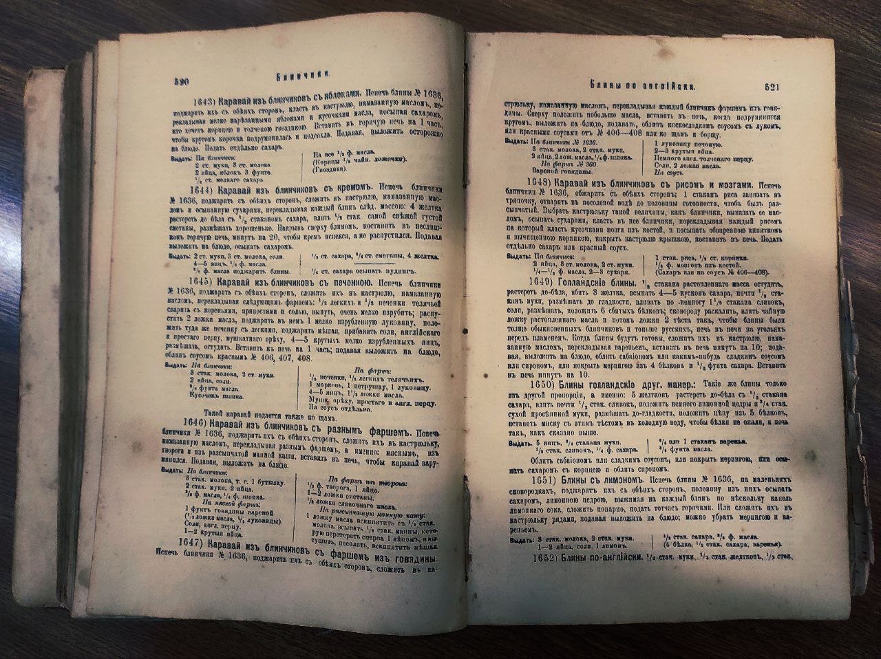 На рубеже 19-20 веков главным источником вдохновения для русских хозяек была книга Елены Молоховец. Она называлась «Подарок молодым хозяйкам, или Средство к уменьшению расходов в домашнем хозяйстве». Книга была выпущена в 1861 году, в нее вошли 1500 рецептов. Каждое издание автор впоследствии дополняла. В начале 20 века в книге было более 4000 рецептов, а также разделы о технике, посуде, таблицы мер и весов, разные виды меню. Издание пользовалось бешеной популярностью и мгновенно стало желанным подарком.