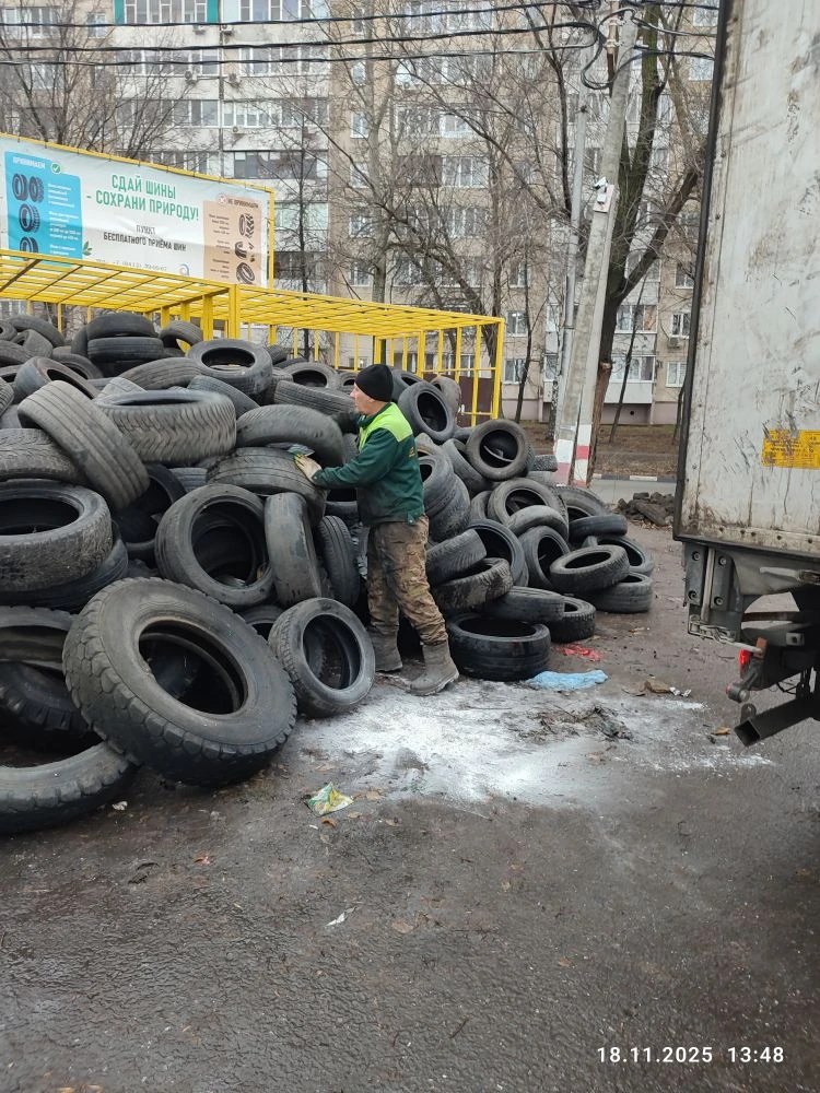 За последние два месяца с территории Ленинского района было вывезено шесть КамАЗов по 10 тонн отработанных шин. Они относятся к отходам IV класса опасности и складировать их на обычных контейнерных площадках категорически запрещено.