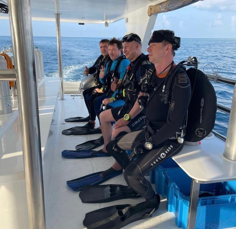 Говорят, что Мальдивы — это ленивый отдых. Однако там можно найти и активные развлечения. Например, первые несколько дней отец и сын (Павел Долгановский) активно изучали подводный мир Индийского океана — занимались дайвингом. «До этого я нырял много раз, но никогда не видел такого большого скопления акул. На глубине 25 метров это немного жутковато. Их можно увидеть и недалеко от берега. Заходишь в воду, а вокруг тебя плавают рыбки разные и акулы. А вот когда подплывали скаты, охранники выгоняли всех на берег», — рассказывает предприниматель. Большой электрический скат, который полностью заряжен, может создать удар до 220 Вольт. Этого достаточно, чтобы сбить с ног взрослого человека, но не хватит, чтобы убить — по крайней мере, если он здоров.