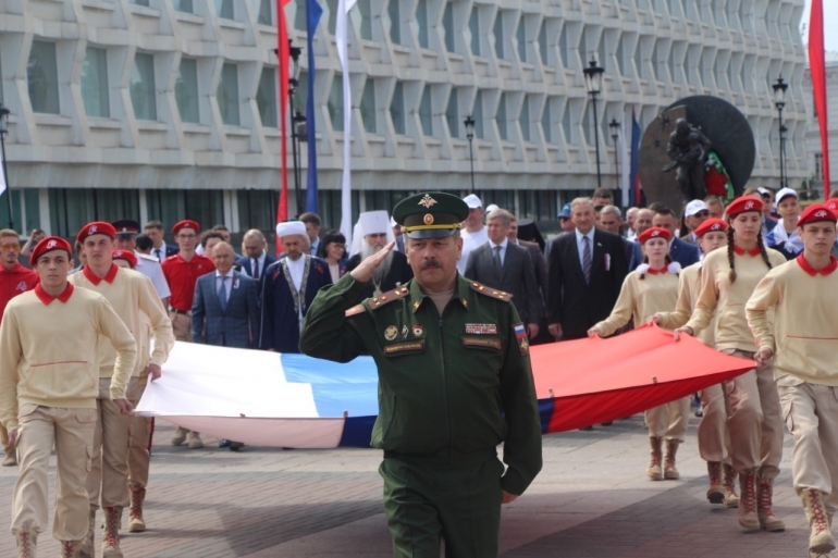 Также в День России в самом центре города прошло шествие: от Педагогического университета до Соборной площади прошлись именитые спортсмены, бойцы Федерации кикбоксинга Ульяновской области.