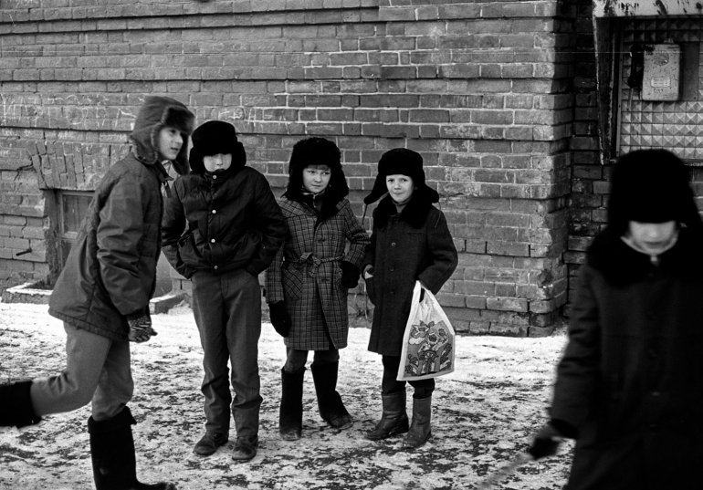 Зимние каникулы у ульяновских школьников, 1988 год. За спиной мальчишек — здание по адресу ул. Карла Либкнехта, 1 (сейчас — медицинский факультет УлГУ). Одежда, знакомая многим: ушанки из «Чебурашки», драповые пальтишки, болоньевые курточки, валенки.