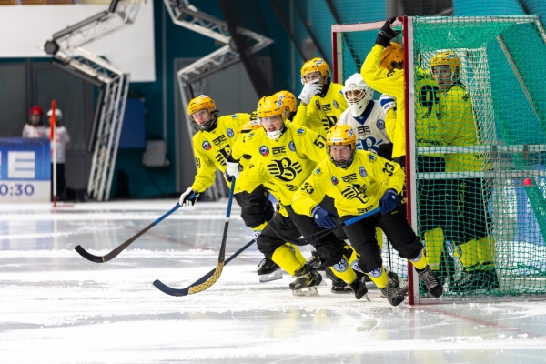 И все же на перерыв команды ушли при счете 2:1 в пользу сибиряков. Оба гола были забиты перед самым перерывом, и к обоим руку (а точнее – клюшку) приложил скандинавский легионер «Кузбасса». Сначала Симон Янссон решился на удар со средней дистанции, а затем выдал точный пас от углового флажка. Едва начался второй тайм, суровый викинг (на фото - улыбается) забил еще дважды – 4:1 в пользу хозяев к 55-й минуте, а всего на его счету оказалось три забитых мяча и две голевые передачи. «Волге» не помогали уже и вратарские подвиги Атаманюка…