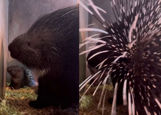 Сотрудники зоопарка рассказали, что совсем недавно у них родился детеныш дикобраза: