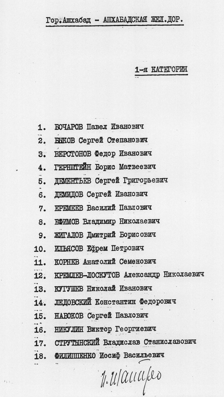 Список подлежащих расстрелу по Ашхабадскому делу. Бывший секретарь Ульяновского губокома Ф. Верстонов-третий в списке