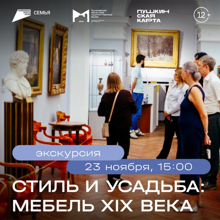 23 ноября в 15:00 в Ульяновском областном художественном музее пройдет экскурсия по коллекции художественной мебели из усадеб Симбирской губернии. Столы, кресла, диваны и шкафы — это не просто предметы обстановки, а свидетели эпохи, рассказывающие о вкусах, традициях и образе жизни наших предков.